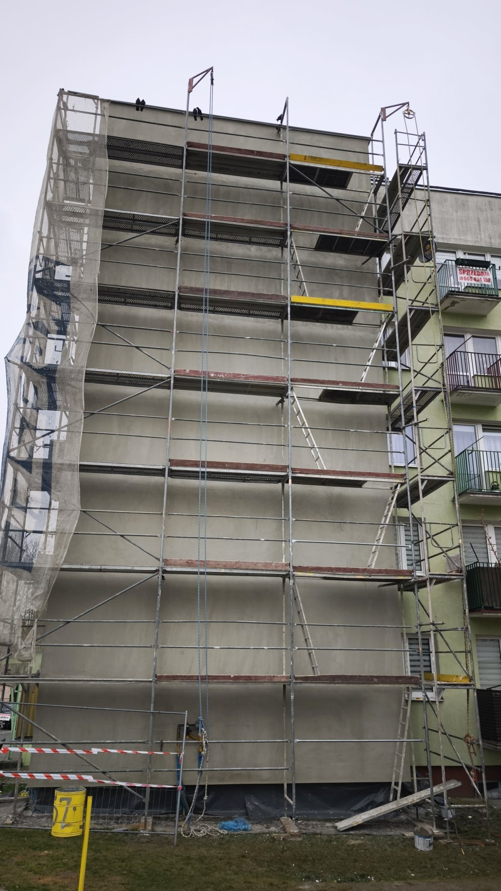 Również w budynku ul. Koszarowa 8A wykonywany jest kompleksowy remont balkonów. Docieplone według obowiązujących norm zostały ściany, które posiadały elewację pokrytą wełną i blachą trapezową. Prace również zbliżają się do końca.